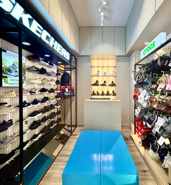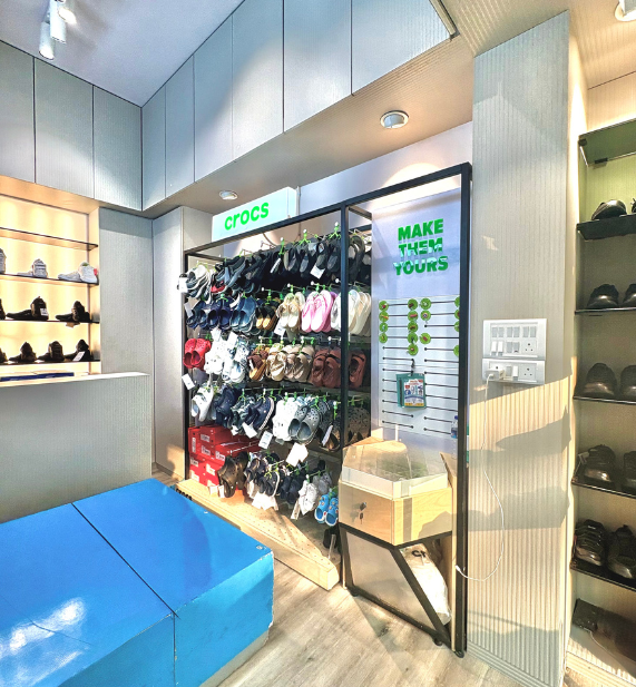 In the heart of Mumbai, where every square foot counts, this 100 sq ft shoe store transforms constraint into creativity. The design focuses on verticality and modular storage, offering high product visibility while maintaining a clean, breathable layout. Wall-to-ceiling storage ensures no inch is wasted, while display lighting highlights key products without overwhelming the space. Smartly integrated cabinets and corner units house additional inventory, ensuring functionality doesn’t compromise aesthetic. Even the smallest footprint can carry a big retail experience.