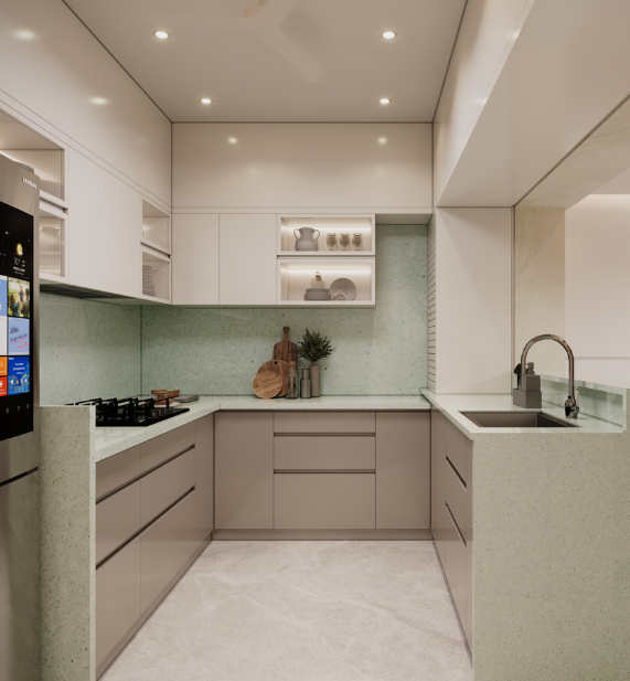 In Mumbai homes, space is a luxury — and design is how we multiply it. In this project, an 8×10 ft kitchen transformation began as a compact, parallel kitchen with limited counter space and no dedicated storage for kitchen appliance. By reconfiguring it into a C-shaped layout, we significantly increased both the platform length and storage capacity.